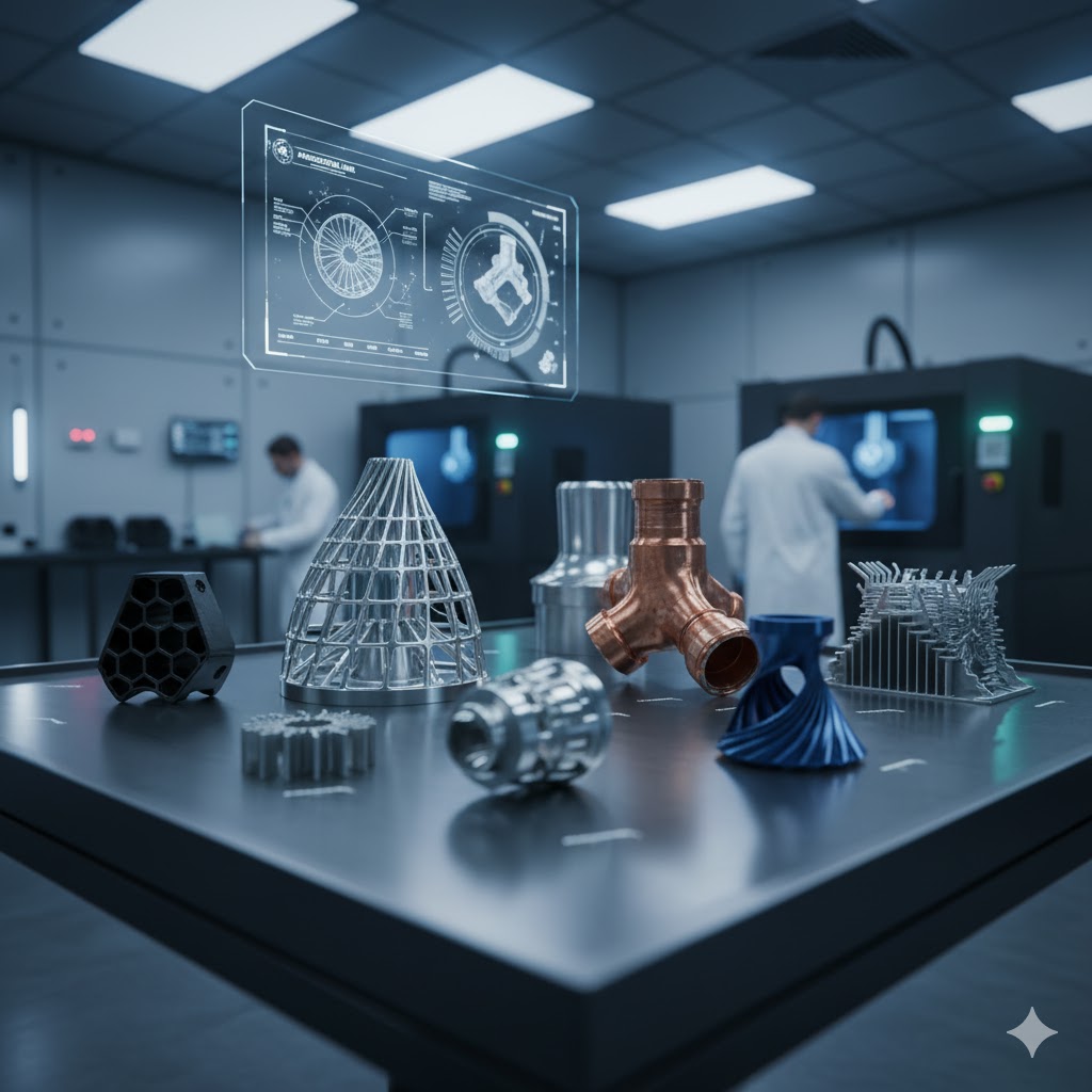 - Complejidad geométrica y optimización de diseño: La fabricación aditiva elimina las restricciones de diseño de los métodos tradicionales (substractivos). Esto permite a los ingenieros crear geometrías orgánicas, canales internos complejos para refrigeración o flujo de fluidos, y estructuras consolidadas que integran múltiples piezas en una sola, reduciendo ensamblajes y puntos de fallo. La optimización topológica, guiada por software, genera diseños que utilizan la mínima cantidad de material para la máxima resistencia.