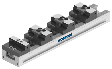 La bancada flexible de Schunk con sistema de multifijación Kontec KSM2 es una solución innovadora y precisa para fijar múltiples piezas de forma estacionaria. Con el objeto de usar máquinas de 3 ,4 o 5 ejes de forma eficiente, el sistema Kontec KSM2 permite el amarre de varias piezas contiguas de manera simultánea. Las mordazas que incorpora, con su diseño optimizado y sin contornos perturbantes, permiten aumentar el número de manipulaciones que se realizan, así como garantizar una mejor accesibilidad a cualquier punto de la pieza. La base de las mordazas, con diseño en forma de sierra, dota al conjunto de una mayor robustez, precisión y estabilidad dimensional. Un mecanismo en forma de cuña garantiza un momento de tracción sobre la pieza durante el proceso de anclaje, sin importar el tamaño constructivo de dicha pieza, asegurando un funcionamiento seguro y preciso incluso en condiciones máximas de operación. La fijación de las piezas al sistema Kontec KSM2 o el cambio de mordazas se realizan de forma muy rápida y sencilla mediante el giro de una llave de actuación.