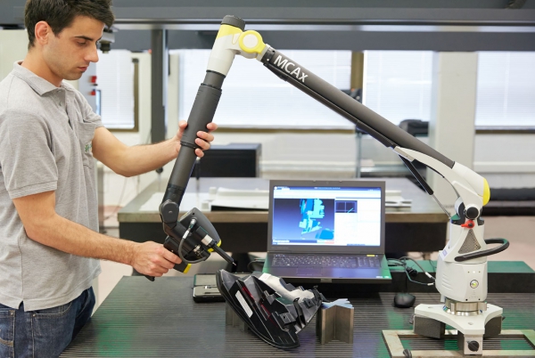 El brazo de medición por coordenadas manual MCAx es un brazo de medición de 7 ejes portátil, preciso, fiable y fácil de utilizar. Esta precisión, capacidad y portabilidad total de la solución permite utilizarlo tanto en el laboratorio de metrología, en ambiente de taller y en exteriores. El brazo MCAx puede estar equipado con una amplia gama de sistemas de palpado para la exploración por láser, mediciones por contacto y exploración en continuo. Su flexibilidad hace que este brazo de medición sea la solución perfecta para la más amplia gama de tareas de medición. La gama de brazos articulados del nuevo MCAx de 7 ejes está disponible con un volumen de medición que va desde un diámetro de 2,0 a 4,5 metros.