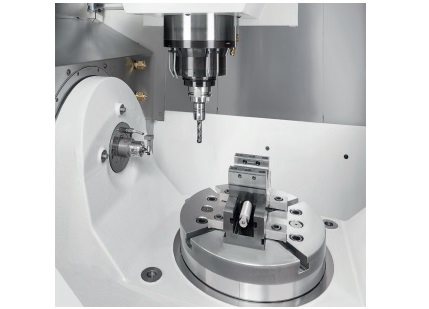 - Cuarto eje con rango de giro de hasta ± 120°; quinto eje con accionamiento de par libre de mantenimiento de hasta 1.000 rpm para torneado.