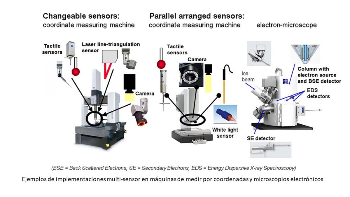 Los sensores, que a menudo tienen una función de medición, se utilizan para vincular los mundos virtual y real. El estado actual se transfiere al "mundo cibernético" como datos reales para derivar información del proceso, recopilarla en bases de datos y utilizarla como base para los modelos que se pueden adaptar (idealmente mediante auto-optimización) a las situaciones reales. Este concepto forma la base para describir incluso interacciones complejas y así prevenir desviaciones del proceso o permitir una respuesta en tiempo real. Los sistemas de sensores adecuados suministran así la información necesaria del mundo real para planificar y controlar el proceso en el mundo virtual con la ayuda del modelo. La integración de la tecnología de sensores y medición es, por tanto, un elemento clave en el éxito de los CPPS, incluso para procesos de producción complejos. Un desafío es recopilar los datos de medición "correctos" en el lugar "correcto" y en el momento "correcto". Sin embargo, incluso la forma en que se manejan los datos recopilados tiene una influencia decisiva en la calidad de la información obtenida. Una interpretación correcta de los datos medidos se vuelve cada vez más importante en la producción en red y máximamente automatizada. El sistema también debe poder reaccionar de manera robusta a datos redundantes y conflictivos.