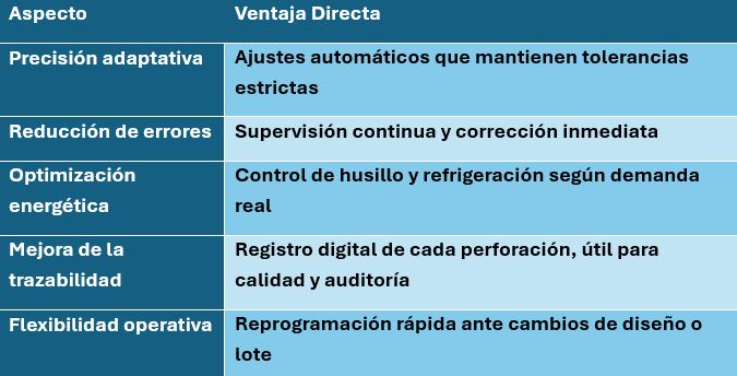 Los algoritmos de ML ajustan automáticamente variables como velocidad, avance y presión de refrigerante según el tipo de material, geometría del orificio y condiciones ambientales. Esto reduce el tiempo de ciclo y mejora la calidad superficial.