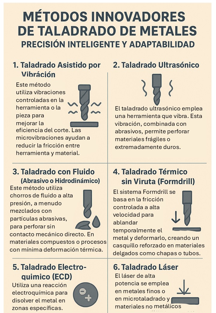 El taladrado de metales, una operación fundamental en la fabricación de componentes mecánicos, está experimentando una transformación radical impulsada por la automatización, la inteligencia artificial (IA), y el desarrollo de nuevas técnicas y materiales. Esta evolución no solo mejora la eficiencia y la precisión, sino que también responde a las crecientes demandas de sostenibilidad y complejidad en sectores como la aeronáutica, la automoción y la ingeniería avanzada.