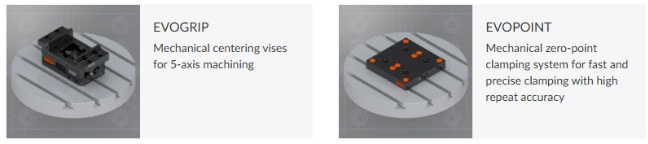 En cuanto a la tecnología de sujeción, la familia de mordazas autocentrantes Evo se complementa con la placa universal de punto cero y la mordaza reversible Rail, lo que permite una adaptación aún mayor a los requerimientos de los clientes.