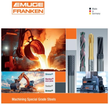 Emuge Franken también presentó soluciones de herramienta para materiales de difícil mecanizado, como HARDOX o TOOLOX de SSAB, incluyendo taladros, machos y fresas diseñados específicamente para estos materiales.