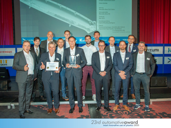Justo antes de la celebración de la feria K 2025, Engel recibió cuatro premios de oro en los prestigiosos SPE Automotive Awards. Los componentes galardonados demuestran claramente la profundidad tecnológica y el expertise en soluciones de Engel. Desde diseños sostenibles y ligeros y piezas funcionales altamente integradas, hasta tecnologías de proceso innovadoras, los proyectos premiados muestran cómo Engel, en estrecha colaboración con sus clientes, está configurando el futuro de la transformación de plásticos, siempre con un fuerte enfoque en ofrecer un valor real al cliente.