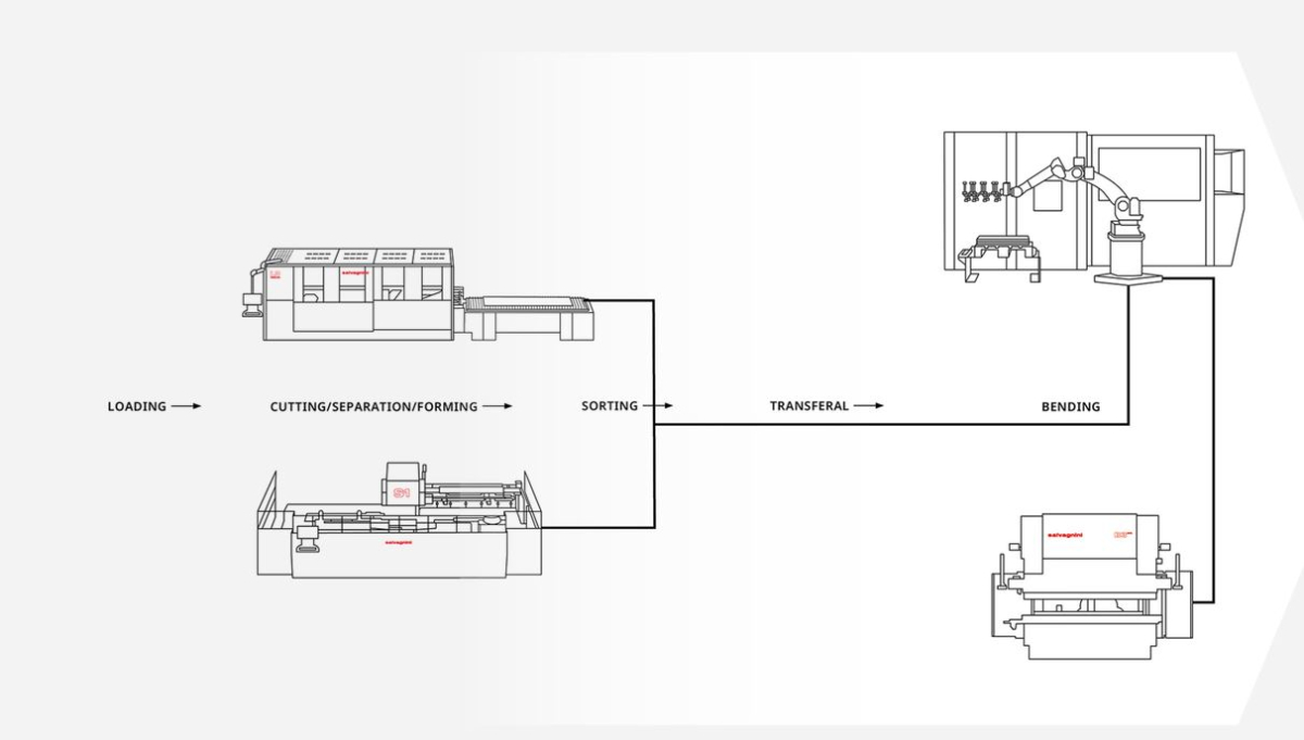 En Blechexpo 2025, Salvagnini mostró un ejemplo de Flexible Smart Job Shop compuesto por los siguientes elementos: