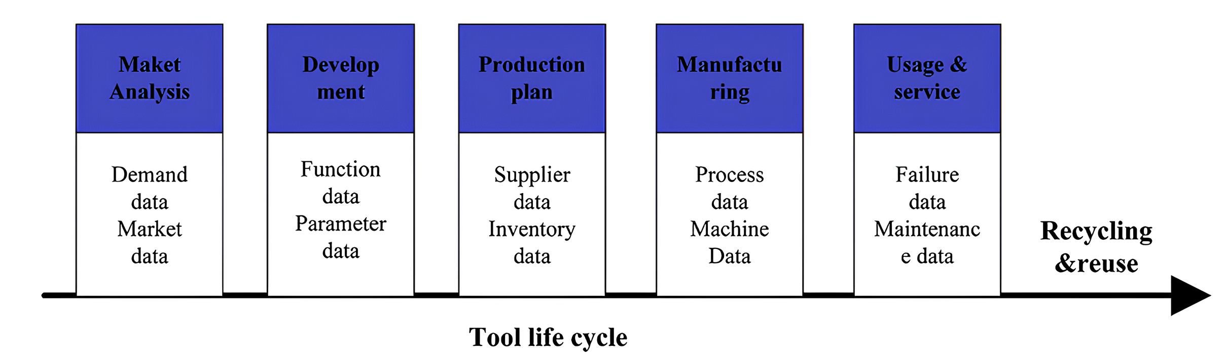 Como dispositivo fundamental utilizado para la ejecución en sistemas de fabricación inteligentes, la máquina-herramienta inteligente desempeña un papel importante en el sistema de producción general. La herramienta de corte es un accesorio fundamental de la máquina-herramienta inteligente y afecta directamente a la calidad superficial de la pieza de trabajo, así como al rendimiento de la herramienta de mecanizado, y puede provocar la rotura de la herramienta si no se le da mantenimiento, lo que precipita consecuencias graves como rayaduras y rechazos de las piezas de trabajo. En los sistemas de fabricación modernos, los fallos de las herramientas provocan hasta un 20% de tiempo de inactividad, lo que supone una tremenda pérdida de productividad y beneficios. En consecuencia, la gestión del ciclo de vida de las herramientas de corte es la forma más eficaz de cumplir los cuatro objetivos principales (mejor calidad, mayor eficiencia, menor consumo de energía y menos contaminación) de la fabricación avanzada moderna.
