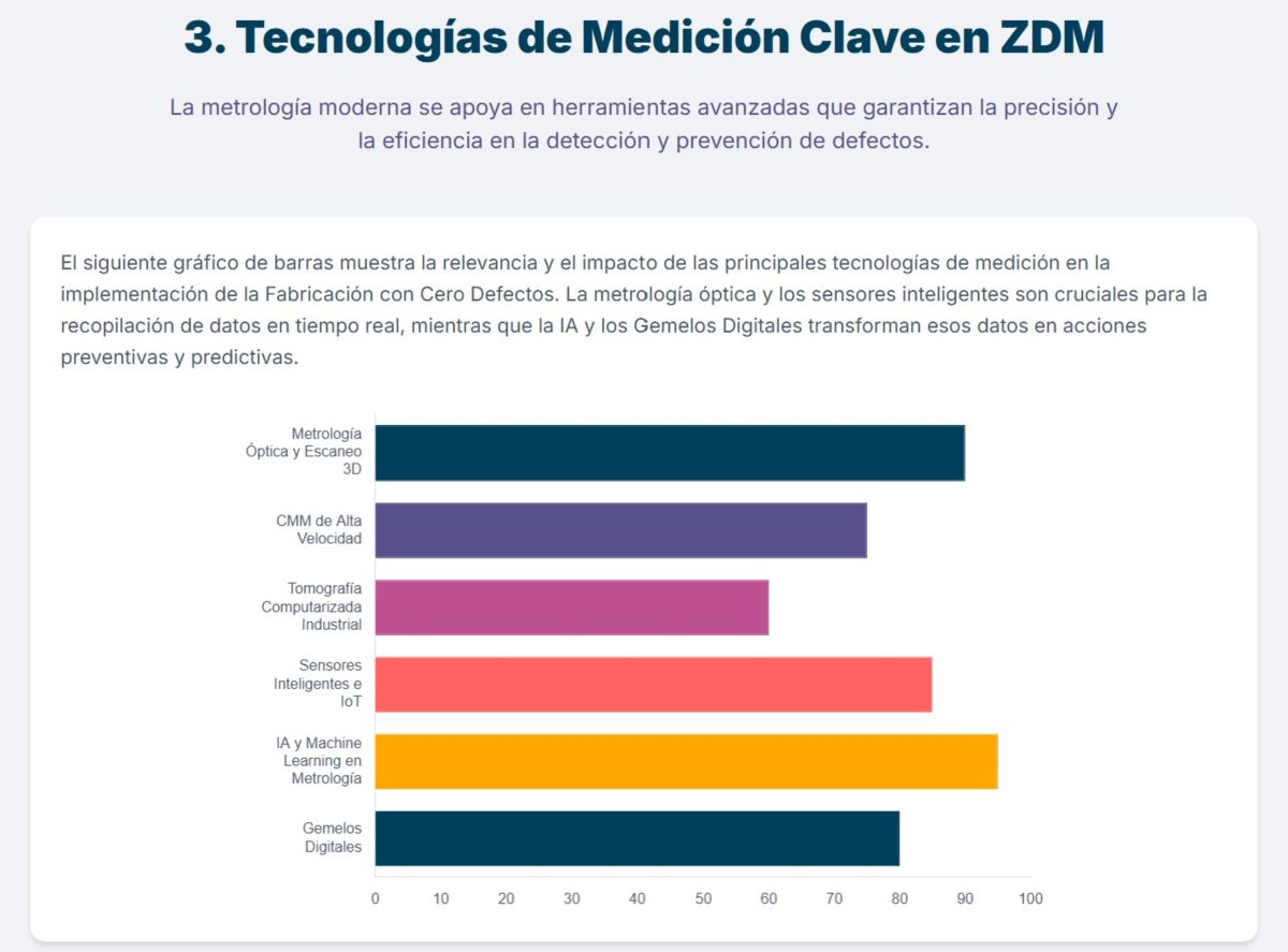 La medición (metrología) es el pilar fundamental sobre el que se construye y mantiene la Fabricación con Cero Defectos. Sin datos precisos y fiables obtenidos a través de mediciones constantes y avanzadas, la ZDM sería inalcanzable. La medición no solo detecta desviaciones, sino que proporciona la información necesaria para comprender, controlar, predecir y prevenir defectos. Su papel se manifiesta en varias etapas y aspectos clave: