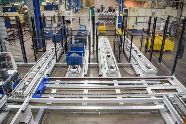 Para Bufab Lann, la extracción de virutas es un elemento importante en la optimización de procesos implementada recientemente. Con un nuevo sistema diseñado por Mercatus, el fabricante de piezas torneadas ha realizado numerosas mejoras. Para ello, son fundamentales, entre otras cosas, las líneas de transporte para carros de virutas basadas en el sistema de transporte Knoll TS-S.