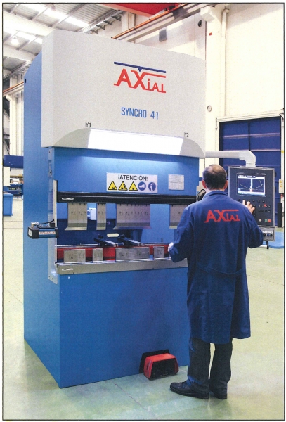 Syncro 41 es la más pequeña de la serie de plegadoras Syncro de Axial. El modelo tiene una capacidad de 1.200 mm de longitud de plegado y hasta 40 t de fuerza. Incluye de serie amarre hidráulico de matriz y de punzón, gran abertura entre los útiles y altas velocidades en todos sus ejes. Rápida, flexible y productiva, ha sido diseñada para ofrecer el máximo rendimiento.