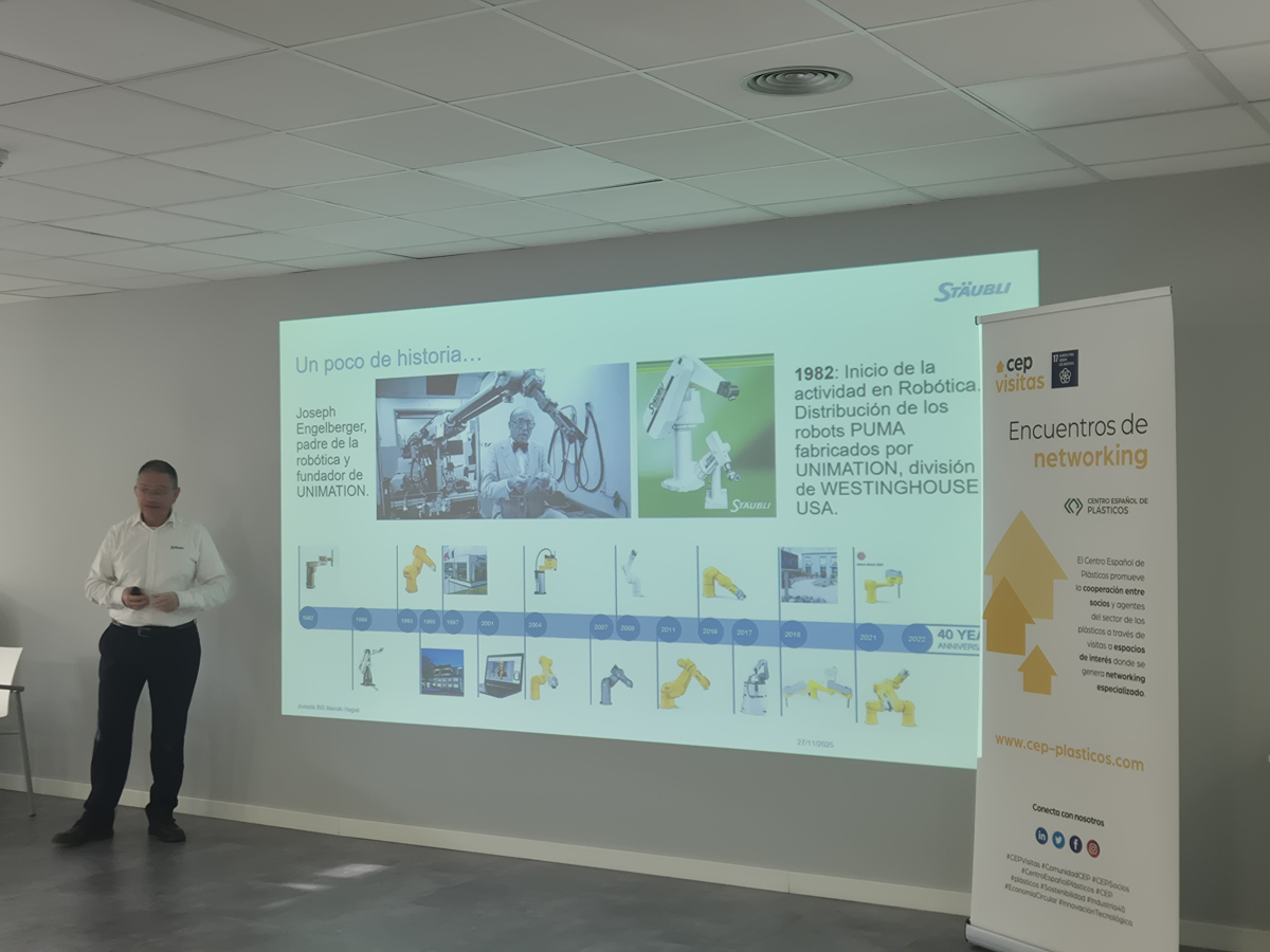 El Centro Español de Plásticos (CEP) organiza “Encuentros de networking en espacios de interés”. En una nueva ‘CEP Visita’, Stäubli -líder mundial en diseño, desarrollo, producción y servicio de tecnologías de automatización, robótica y conexión- presentó el 27 de noviembre sus soluciones innovadoras para el conexionado de fluidos en el sector del plástico y soluciones SMED para el cambio rápido de moldes. Durante la visita, los asistentes pudieron explorar soluciones y sistemas avanzados diseñados para mejorar procesos en la industria del plástico. Descubrieron propuestas para la mejora SMED que permiten cambios rápidos de moldes, aumentando así la eficiencia y reduciendo el tiempo de inactividad.