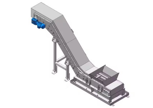 - Transportador en forma de Z: Los transportadores RUF permiten automatizar la alimentación de material o el transporte de briquetas en las industrias de transformación de metal o madera, así como en el sector del reciclaje. Con estos transportadores, las virutas o briquetas se transportan automáticamente a la tolva de la briquetadora o al contenedor de recogida. El transportador de briquetas o virutas se integra fácilmente en las líneas de producción existentes.